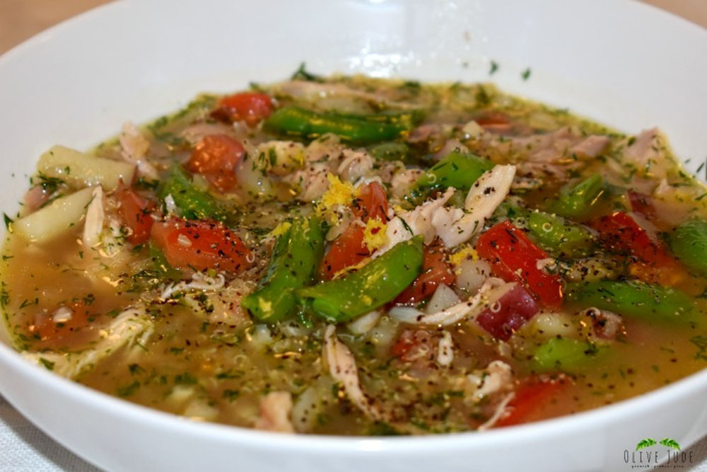 Here’s a light yet filling bowl with a fresh twist. Shredded rotisserie chicken, protein-packed quinoa, bright dill, lemon zest, garlic, and a soothing broth come together in a clear, herb-bright soup that’s both uplifting and satisfying.