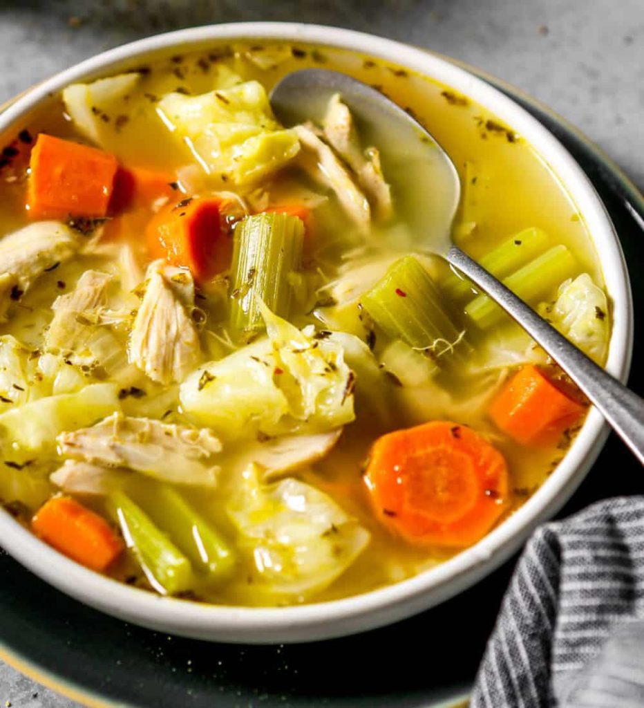 It’s cozy, veggie-packed, good for the soul. This one stirs together shredded chicken, cabbage, carrots, celery, onion, garlic, herbs, and even a splash of vinegar for brightness—simple ingredients but deeply satisfying when simmered just right.
