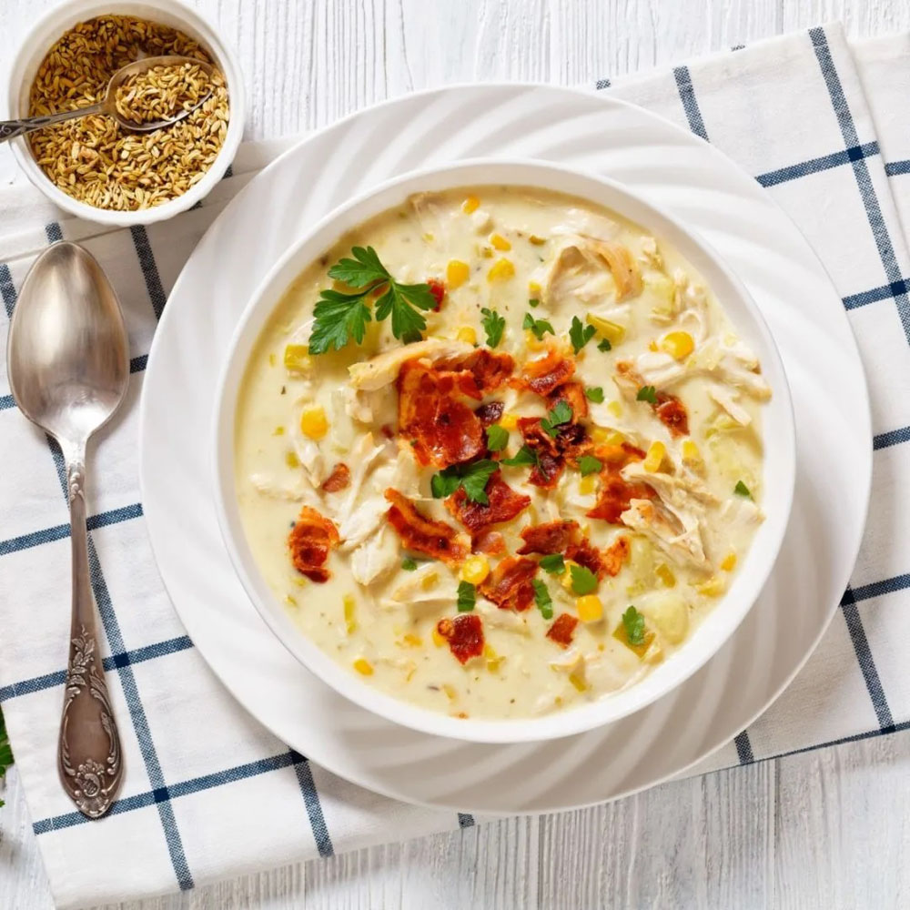 Can anything beat thick, hearty comfort that feels like dinner and dessert in one? This chowder brings together creamy potatoes, pops of sweet corn, and juicy shredded rotisserie chicken—warm and filling with minimal effort.