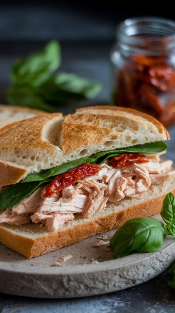 This sandwich tastes like something you’d order at a fancy lunch spot. The creamy, tangy sun-dried tomato mixture turns regular chicken into something luxurious. It’s rich, flavorful, and ridiculously easy.