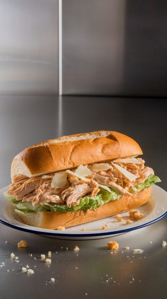 If you love Caesar salad, this sandwich is your new obsession. Think creamy dressing, crunch from lettuce, and juicy chicken—basically your favorite salad made handheld.