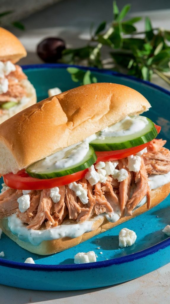 This sandwich tastes like something you’d find in a seaside café—zesty, herby, and bursting with fresh flavor. The combo of feta, lemon, and veggies makes it feel bright and satisfying.
