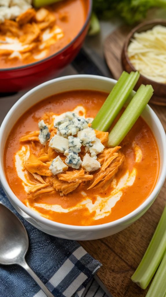 Buffalo wings meet cozy soup — a fiery favorite for game days or cold nights.