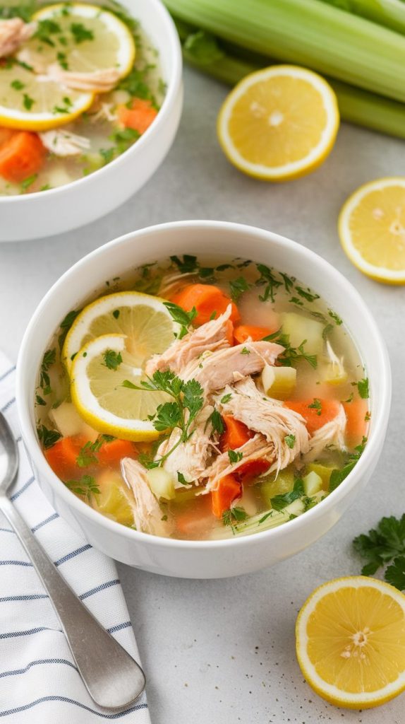 4. Lemon Herb Shredded Chicken Soup