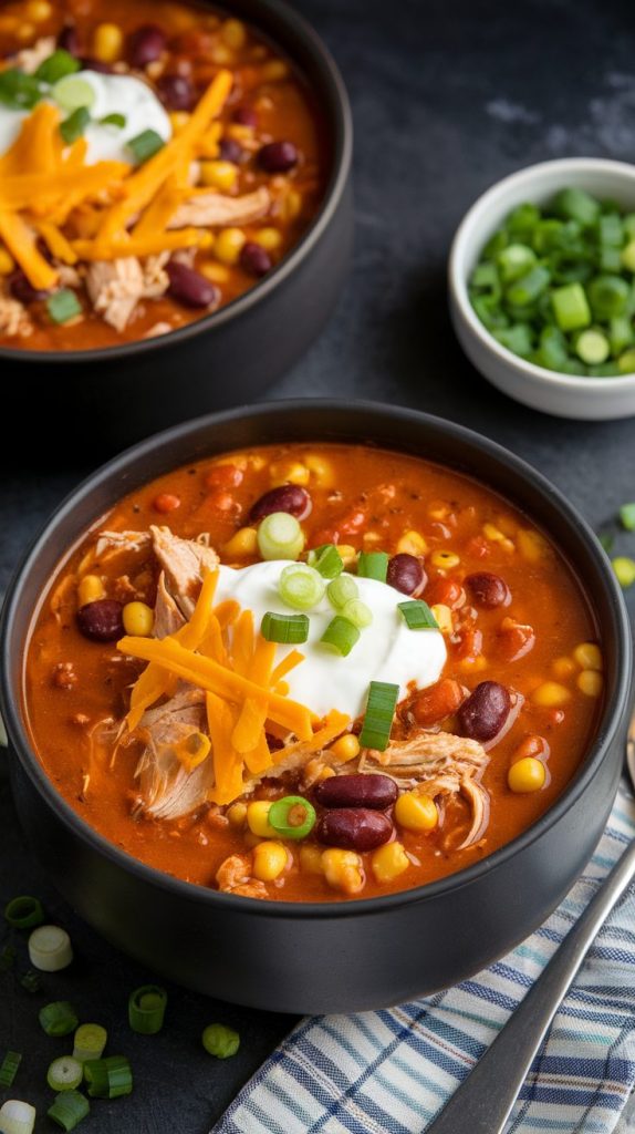 9. Slow Cooker Shredded Chicken Chili Soup