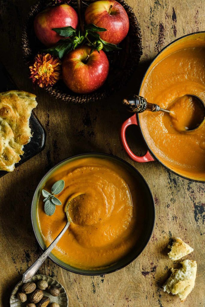 The apples give a bright punch against the mellow squash and potato. Spices make it feel warm and seasonal (but not overwhelming).
