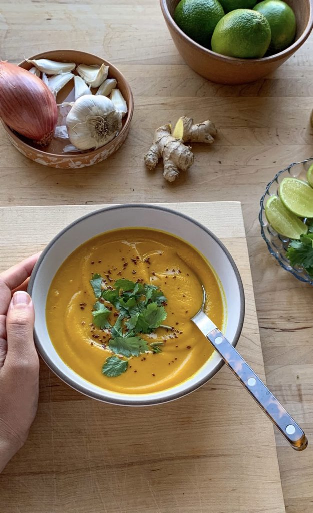 The spice blend gives the soup that lovely complexity without being overwhelming. Coconut milk and stock round it out so it’s creamy and satisfying.