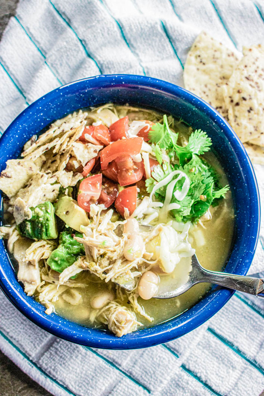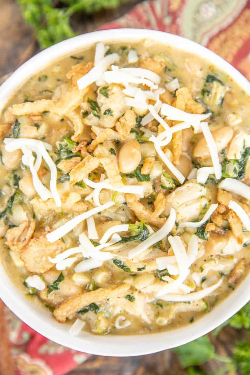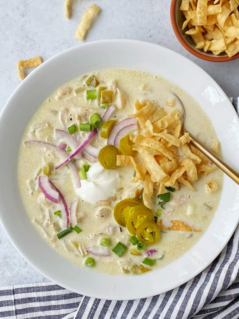 13. Creamy White Chicken Chili with Tortilla Strips
