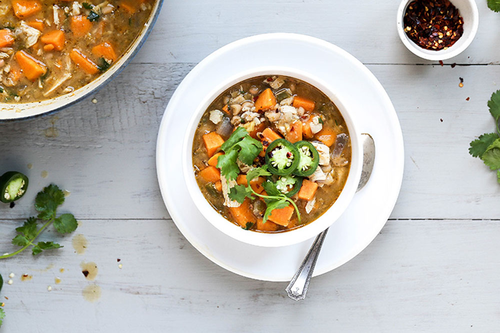 20. White Chicken Chili with Sweet Potatoes