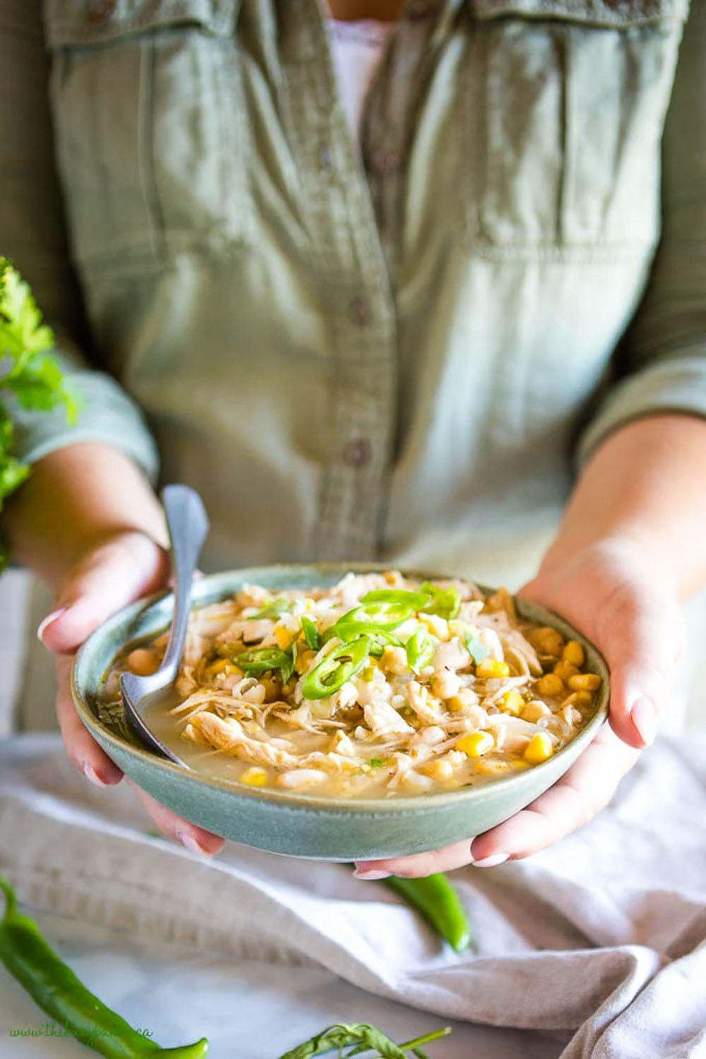 6. Spicy White Chicken Chili with Jalapeños